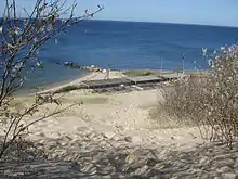 The 5,200-acre (21 km2) Rocky Point site was decommissioned in 1978 and demolished in the 1980s. It now consists of many concrete ruins and downed telephone poles and radio towers, owned by the New York State Department of Environmental Conservation. It is part of the Rocky Point Pine Barrens State Forest, which is in the Long Island Central Pine Barrens. The site gives an interesting insight into the 1920s, because—being in the middle of the forest—the footprints of the site remain largely untouched since its operational period. The western terminus of the 125-mile-long (201 km) Paumanok Path hiking trail is in the forest, with the eastern terminus at the Montauk Point Light.[4]