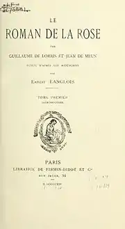 - Langlois, Ernest, ed. Le Roman de la Rose par Guillaume de Lorris et Jean de Meun. 5 vols. Société des Anciens Textes Français. Paris: Firmin Didot, 1914–24.