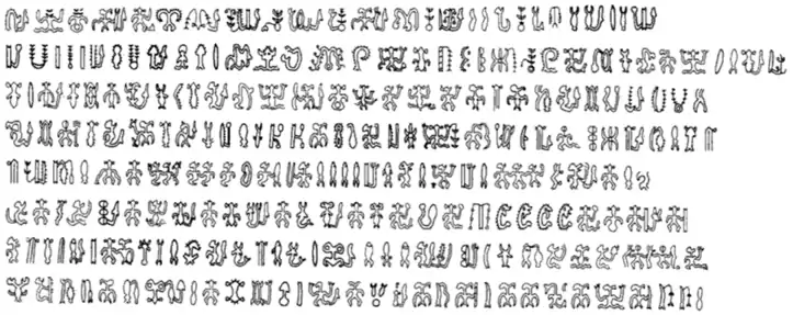 Eight lines of glyphs on each side, for ~ 720 glyphs in all.