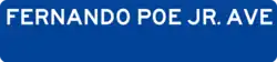 Fernando Poe Jr. Avenue (also known as FPJ Avenue), formerly Roosevelt Avenue (Tagalog: [ˈruːsbɛlt]),[lower-alpha 1] is the principal north–south tertiary road serving the San Francisco del Monte district (colloquially known as Frisco) of Quezon City, Philippines. It runs with a length of 2.871 kilometers (1.784 mi) between Epifanio de los Santos Avenue (EDSA) to the north and Quezon Avenue to the south. The avenue is named after Fernando Poe Jr., a renowned Filipino actor and National Artist of the Philippines who once lived along it.[4][5] As Roosevelt Avenue, it was named after former United States President Franklin D. Roosevelt.[6]