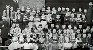 In 1890, a public school opened at the corner of 103rd and Michigan and the church fathers in the area felt that a second school was needed to provide Christian educational opportunities for the area's Dutch-speaking residents. A commission was founded to explore options for another school. It was eventually built on 104th Street as a complement to the existing school several blocks away. Classes began on 5 October 1891 with 25 students in attendance.[3] The two schools existed separately but remarkably close to each other. The 104th Street school was controlled by the parents of the students while the 111th Street school was controlled by the principal.[4] The two resisted many attempts to amalgamate due to the curriculum, financial, and personnel issues involved. One thing that the schools did have in common was the Dutch Language. It was not until 1910 that the 111th Street school switched to an English language curriculum for every subject. The 104th Street school followed the next year.[3] The schools survived separately through two world wars and the Great Depression before finally coming together in 1947.[4]