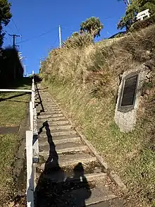The suburb of Roslyn contains Kaikorai Primary School, currently accessed off Wright Street. The school was previously a bluestone building accessed through a pair of memorial arches on Tyne Street. The arches were removed in 1981 for safety reasons, although the gateway still remains.[4] Wright Street was originally Linden Street, named for the large linden tree which still stands outside number 360 Highgate.[5] Opposite the school is St John's Anglican Church, built in 1880.[6]