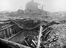 The small village of Hooge in Flanders belonged to one of the easternmost sectors of the Ypres Salient, which made it the site of intense and sustained fighting between German and Allied forces. From 1914 the front line of the Salient ran through the Hooge area. There was almost constant fighting in the area over the next three years, and Hooge changed hands a number of times. The château at Hooge was used as the British divisional headquarters for the area for some time;[15] several senior officers from the 1st and 2nd Divisions were killed when the Château de Hooge was shelled on 31 October 1914.[16] German forces attacked the château between 24 May and 3 June 1915 and despite the detonation of a mine by the 175th Tunnelling Company (operating with the 3rd Division) on 19 July, leaving a massive crater, took control of the château and the surrounding area on 30 July 1915.[17] The château and the crater (craters being strategically important in relatively flat countryside), were taken by the British 6th Division on 9 August.[16] It was reclaimed by the Germans on 16 June 1916 and retaken by the British on 31 July 1917 when the 8th Division managed to advance past it by about a mile.[17] The Germans retook the site in April 1918 as part of the Spring Offensive but were expelled from the area by the British on 28 September[16] as the offensive faltered. The chateau was completely destroyed along with the entire village; several large craters were blown over the course of the 1917 fighting.[18]