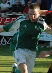 After being an unused substitute for Boston he opted to a move to Conference Premier team York City on non-contract terms, in pursuit of a permanent deal, on 15 September.[14][15] He eventually signed a permanent contract at the club on 27 September.[16] He joined Northern Premier League Premier Division team North Ferriby United on loan in November 2007.[17] He made a scoring debut after netting the winning goal in the 45th minute of a 1–0 victory over Eastwood Town on 24 November.[18] He returned to York after the loan concluded in January 2008,[19] having made 11 appearances and scored 3 goals for Ferriby.[18] His first start for York came playing as a wingback in a 2–0 victory at Farsley Celtic in the FA Trophy third round on 3 February.[20] This was followed by a second successive start in a 3–3 draw after extra time with Northwich Victoria in the Conference League Cup fifth round Northern section on 6 February, which York lost 3–2 in a penalty shoot-out, although he was substituted in the 52nd minute.[21]