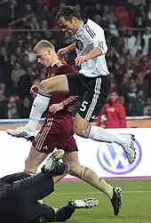 Russia was drawn to Group 4 in qualification for 2010 FIFA World Cup, competing with Germany, Finland, Wales, Azerbaijan and Liechtenstein. The team started the campaign with a 2–1 victory over Wales but on 11 October lost 2–1 to Germany. Russia's form then improved, and by winning 3–1 away to Wales on the same day as Finland drew 1–1 to Liechtenstein, guaranteed them at least a play-off spot. The match at the Luzhniki Stadium against Germany to top the group was watched by 84,500 fans. Miroslav Klose scored the only goal of the game in the 35th minute, sending the Germans to the finals in South Africa and Russia to a play-off.