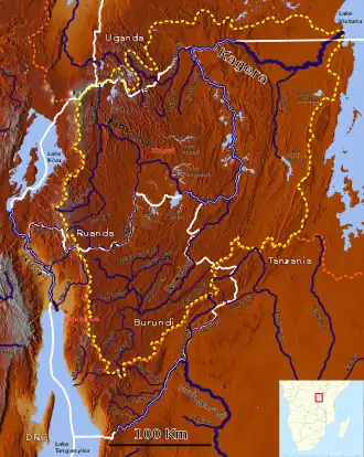 The Ruvyironza (or Luvironza) River is a river in Africa that is considered by some to be the most remote source of the Nile,[1] the world's longest river. It rises on Mount Kikizi in Burundi, and flows over the Rurubu River into the Kagera River in Tanzania,[2] and from there into Lake Victoria. With a total length of 182.4 km (113.3 mi).