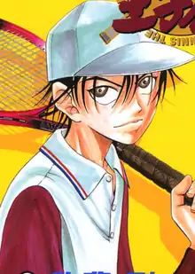 Ryoma Echizen (越前 リョーマ, Echizen Ryōma) is a fictional character and the protagonist of the manga and anime series The Prince of Tennis created by Takeshi Konomi. In the series, Ryoma is portrayed as a twelve-year-old tennis prodigy who won four consecutive Junior Tennis Tournaments in America. His father is Nanjiro Echizen, a former tennis pro nicknamed "Samurai Nanjiro". At his father's request, Ryoma returns to Japan in order to attend Seishun Academy ("Seigaku"), a private middle school famous for its tennis team. Due to his cocky attitude, he constantly butts heads with some of his upperclassmen as well as anger most of his opponents in tennis matches. Still, he, along with his team, evolve as tennis players in order to win the National Tennis Tournament. Throughout the story, Ryoma continues to find his own style of tennis by creating original techniques instead of merely being a copy of his father. Ryoma also appears in other media adaptations of the series including musicals, video games, soundtracks, and films.