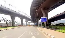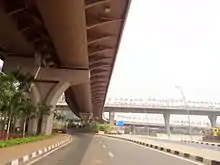 The Sahar Elevated Access Road, abbreviated to SEAR, is a dedicated, elevated, express access road in Mumbai[1] that connects the Western Express Highway (WEH) near Hanuman Nagar junction in Vile Parle, with the forecourts of Terminal T2 of the Chhatrapati Shivaji International Airport.[2] The road improves access and travel times between the WEH and the airport.[3] The 2.2 km long access road has 4 entry and 2 exit points. The road also includes an underpass for vehicles travelling on the WEH and a pedestrian subway;[4] as well as an underpass, a tunnel, and ramps connecting the highway to the terminal which bypasses the congested roadways below.
