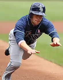Fuld's play with the Cubs was limited to late-season call-ups over three years, including just 40 starts.[8] After the 2010 season, they traded him to the Tampa Bay Rays.[16][113][114][115] He was traded with minor leaguers Hak-Ju Lee, Brandon Guyer, Robinson Chirinos, and Chris Archer for starting pitcher Matt Garza, outfielder Fernando Perez, and reliever Zac Rosscup.[116][117]