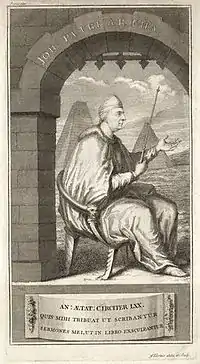Following grammar school education in Dorchester, Wesley was sent away from home to prepare for ministerial training under Theophilus Gale. Gale's death in 1678 forestalled this plan. Instead, he attended another grammar school.[1] After that, he studied at dissenting academies under Edward Veel in Stepney and then Charles Morton in Newington Green, where Gale had lived. Daniel Defoe also attended Morton's school. This school was situated "probably on the site of the current Unitarian church",[2] contemporaneously with Wesley. Samuel resigned his place and his annual scholarship among the Dissenters. After that, he walked all the way to Oxford, where he enrolled at Exeter College as a "poor scholar". He functioned as a "servitor", which means he sustained himself financially by waiting upon wealthy students. He also published a small book of poems, entitled Maggots: or Poems on Several Subjects never before Handled in 1685. The unusual title is explained in a few lines from the first page of the work: