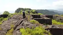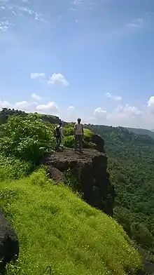 There are no Bastions or Gate on the fort. But there are plenty of rock cut cisterns on the fort and a small cave. Climbing the fort is through rugged, rough rocky boulders.[2] The Badruddin Darga at the base of the fort is worth visiting. There is a water cistern called Gajishah tank on the way to the top.[3] From the top of this fort many forts like Karnala, Manikgad and Sagargad are seen.