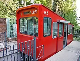 The funicular was opened in 1891, and was initially water-driven, with water filling a ballast tank under the carriage at the top station, and emptying at the bottom. The line was converted to electric operation in 1980, and was again modernized in 1991 following a fire that destroyed the top station.[1]