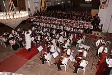 The brilliant performance of Sacred Music, at the Basilica of Bom Jesus, on 11 April 2011, was something rare in the musical annals of Goa. This program, with the participation of about 150 singers and musicians, brought the Fourth Centenary celebrations of Rachol Seminary to a close. The program for the evening comprised: Gloria (RV 588) by Antonio Vivaldi, hymns to St. Francis Xavier and Bl. Joseph Vaz and compositions by ex-Directors of the Choir. The Te Deum, sung in a polyphonic setting with the traditional Gregorian melody as refrain, proved to be a fitting finale of praise to the Most Holy Trinity for the 400 years of Rachol Seminary. The Archbishop-Patriarch, Most Rev. Filipe Neri Ferrão graced the occasion in the midst of a packed Basilica.[8][9]