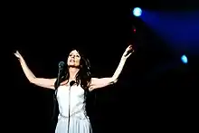 Brightman's music is generally classified as classical crossover. According to Manhattan Records GM Ian Ralfini, she is largely responsible for the popularity of the genre. In a 2000 interview with People, Brightman dismissed the classical crossover label as "horrible" but stated she understood people's need to categorise music.[127] Her personal influences include 1960s and 1970s musicians and artists such as David Bowie and Pink Floyd,[26] and she incorporates aspects of genres from pop/rock to classical. Her work has also been compared to that of Madonna, Cher and Celine Dion.[128] The material on her albums ranges from versions of opera arias from composers such as Puccini (on Harem, Eden, and Timeless), to pop songs by artists such as Kansas ("Dust in the Wind" on Eden), Dido ("Here with Me" on La Luna), and Procol Harum ("A Whiter Shade of Pale" on La Luna). She sings in many languages which are English, Spanish, French, Latin, Italian and Japanese.