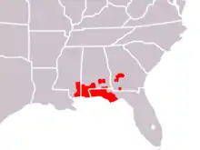 It inhabits moist and low-nutrient longleaf pine (Pinus palustris) savannas, primarily along the United States Gulf Coast, and generally west of the Apalachicola River on the Florida Panhandle. It is also found in Alabama, Georgia, Louisiana, Mississippi, and North Carolina.[3]