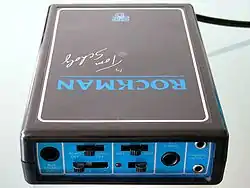 Released in 1982, the original Rockman (Model I) advertised "custom EQ, heavy sustain, clean/distortion control, 'chamber echo', stereo chorus" and "folding headphones". The Rockman requires eight AA batteries or a "Rockadaptor" power supply adapter which mounts in the battery compartment.