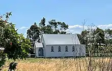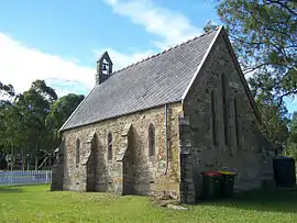 Seaham was partially destroyed by bushfires on 14 January 1939, the smoke of which could be seen as far north as Forster.[20][21] At Porphyry, the circa 1839 home of Mr and Mrs Gavin Ralston was completely destroyed, along with outbuildings and stables.[22] At neighbouring Felspar, the Graham family escaped "with the utmost difficulty" after the roof of a kitchen had collapsed in their burning home.[23] Three automobiles went in the destruction at Felspar, in addition to the period relics and furniture inside the homestead.[24] In Seaham village, the efforts of firefighters were concentrated on extinguishing flames around the post office and School of Arts (1902). Although both public buildings were saved, the Seaham Presbyterian Church, Seaham Public School and several homes were lost.[21] A "desperate battle" was fought at Brandon, south of the town proper, where two homes were lost.[25] A "good save was effected" at the circa 1884 homestead, where the fire was extinguished at the backdoor.[26]
