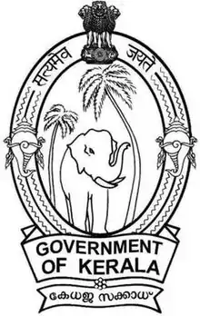 The Emblem of Kerala[1] used by Government of Kerala, to represent the state in all its official correspondences. The emblem portrays two elephants guarding the state emblem of India and the Shankh of Sri Padmanabhaswamy according to the history of Kerala.