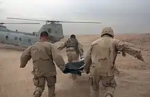 The battle proved to be the bloodiest of the war and the bloodiest battle involving U.S. Marines since the Vietnam War.[59] Comparisons with the Battle of Hue City and the Pacific campaign of World War II were made. [60] Coalition forces suffered a total of 107 killed and 613 wounded during Operation Phantom Fury. U.S. forces had 54 killed and 425 wounded in the initial attack in November.[11] By 23 December when the operation was officially concluded, the casualty number had risen to 95 killed and 560 wounded.[12] British forces had 4 killed and 10 wounded in two separate attacks in the outskirts of Fallujah.[13][14] Iraqi forces suffered 8 killed and 43 wounded.[11] Estimates of insurgent casualties are complicated by a lack of official figures. Most estimates place the number of insurgents killed at around 1,200[61] to 1,500,[15] with some estimations as high as over 2,000 killed.[11][12] Coalition forces also captured approximately 1,500 insurgents during the operation.[15]