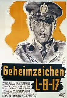 Secret Code LB 17 (German: Geheimzeichen LB 17) is a 1938 German thriller film directed by Victor Tourjansky and starring Willy Birgel, Hilde Weissner and Bernhard Minetti.[1] It was made at the Babelsberg Studios outside Berlin. The film's sets were designed by the art directors Karl Böhm and Erich Czerwonski.