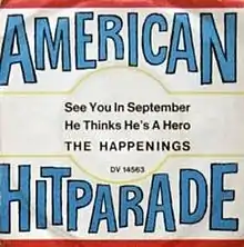 "See You in September" is a song written by Sid Wayne and Sherman Edwards. It was first recorded by the Pittsburgh vocal group the Tempos. This first version peaked at No. 23 in the summer of 1959.[1] The most popular take on "See You In September" was by the Happenings in 1966, which reached No. 3.[2]