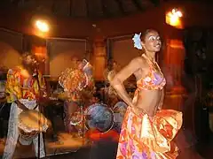 There is also the tantam, which is a stringed instrument consisting of a gourd with a bow attached, played in time to the drum.[6] Nowadays, electric guitars and keyboards are used.[6]