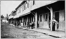 This area also was long a main landing point for pirates.[2] Very few people lived on the coasts for fear of these marauders,[2] as they roamed the seas, kidnapping, raiding and killing.[2] Action by Sir James Brooke, and other western colonial powers such as the Dutch and Spanish, managed to successfully combat the pirates over the course of the 1800s.[2] Upon the advent of the Chartered Company in the early 1880s, only one pirate stronghold remained at Omadal island, which was defeated by HMS Zephyr in 1886.[2] By mid 1887, a trading station on the southern side of the entrance to Darvel Bay was established.[2] With pirates having recently destroyed the settlement of Maimbung in Sulu, some of the Chinese merchants there asked for permission to settle in the Company's territory, under the rule of law and its resulting security.[2] Semporna was the site of a small-scale migration of Chavacano speakers from Zamboanga, fleeing the Malaysia-funded Moro Conflict between Muslim rebels and the Philippine government. These Chavacanos speak a Creole of Mexican-Spanish[4] and are partially descended from Peruvian settlers mixed with indigenous Filipinos[5] from the former Rajahnate of Sanmalan.[6]