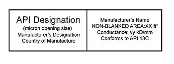 The American Petroleum Institute (API) Screen Designation is the customary identification for screen panels. This includes: