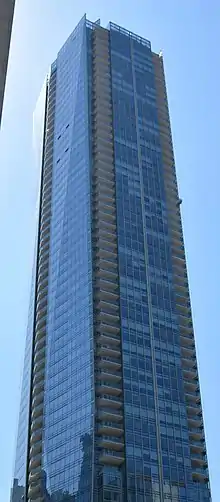 Shangri-La Toronto is a luxury hotel and residential condominium building in downtown Toronto, Ontario, Canada. It was designed by James K. M. Cheng and built by Westbank Projects Corp.; they also designed and built the Living Shangri-La in Vancouver. The building is 214 meters tall and is one of the fifteen tallest buildings in Toronto. The hotel component is run by Shangri-La Hotels and Resorts and has 202 guest rooms and suites.[2] The condominium portion occupies the upper floors of the building and consists of 393 units.[3] Excavation of the site started in 2008, and work on the parking garage began in early 2009.