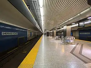 ![]() Sheppard–Yonge station Line 1 platform in 2023 | ||||||||||||||||
