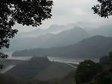 The Dahan River is the main river in northwestern Taiwan and is one of two tributaries that join in Taipei to form the Tamsui, Taiwan's largest river system. Originating in the Xueshan Range, the river begins life as a fast-flowing mountain stream prone to flooding during typhoons. The Dahan skirts, but does not cross, the Taoyuan Plateau, which lacks a reliable water supply of its own. The plateau has been farmed since 1680 using thousands of artificial ponds to capture rainfall;[5] in 1928, when Taiwan was under Japanese rule, the Taoyuan Canal was dug to divert water from the Dahan (then known as the Takekan River) onto the plateau.[6] River water enabled the irrigation of an additional 20,000 hectares (49,000 acres) of land in the Taoyuan area.[7] Due to the limited storage capacity of the small Taoyuan ponds, there was often not enough water for irrigation in the November–April dry season, demonstrating the need for a large reservoir.[7]