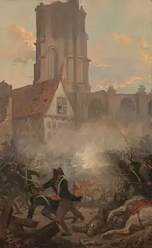 Lowendal felt an urgency to take the town because autumn rains were coming. The rains would cause certain failure of the siege. Lowendal, advised that several breaches in the defensive fortification were practicable,[32][33] stormed the city in a coup de main attack on the early morning of 18 September 1747. The Dutch commanders did not perceive the breaches as practicable and had taken no particular cautionary measures. The city garrison consisted of nine battalions: two Scots battalions, Colyear and Majoribanks; Waldeck and Saxe-Gotha, Lewe, Evertsen, Holstein-Gottorp, Deutz and van Rechteren.[34]