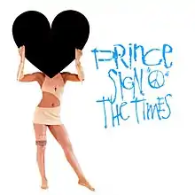 The song proved popular upon release, topping the R&B chart, and reaching number three on the Billboard Hot 100 and number 10 on the UK Singles Chart.[3] In 2010 Rolling Stone ranked "Sign o' the Times" at number 304 on their list of the 500 Greatest Songs of All Time. By July 1987, it sold 200,000 copies in the United States.[4] In 1987, Village Voice's Pazz & Jop critics' poll named "Sign o' the Times" the best single of the year, Prince's third recognition in that category.[5] The song is also included in The Rock and Roll Hall of Fame's 500 Songs that Shaped Rock and Roll.[6] Cat Glover is pictured on the single hiding her face behind a black heart.