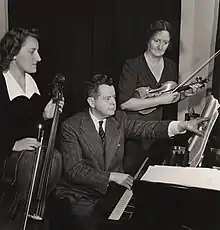 In the early 1940s, MacMillan formed "The Canadian Trio".[22] Alongside musicians Zara Nelsova (cellist) and Kathleen Parlow (violinist), MacMillan often performed in Toronto and occasionally elsewhere.[22] Amazingly, they once performed Beethoven's Triple Concerto in C Major with the Toronto Symphony Orchestra at Massey Hall.[22] Furthermore, MacMillan founded "The Canadian Duo"[22] with Kathleen Parlow; their performances were broadcast on CBC Radio as well.
