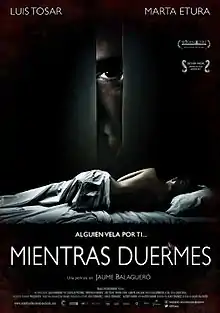 Sleep Tight[n. 1] (Spanish: Mientras duermes; lit. 'While You Sleep') is a 2011 Spanish psychological thriller film directed by Jaume Balagueró from a screenplay by Alberto Marini which stars Luis Tosar alongside Marta Etura. In the film, César (Tosar), a concierge of an apartment building, is unable to reach happiness no matter what happens to him, and he has a goal to make the tenants upset. Clara (Etura) proves to César that making her upset is harder than he expected and things turn to a twisted event when her boyfriend Marcos visits her. Sleep Tight was considered one of the most anticipated films to be premiered at the 44th Sitges Film Festival.[2]