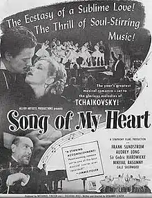 Song of My Heart is a 1948 American historical drama film directed by Benjamin Glazer and starring Frank Sundström, Audrey Long and Cedric Hardwicke. It is a highly fictionalised biopic of the nineteenth century Russian composer Pyotr Ilyich Tchaikovsky.[1] It was distributed by Allied Artists.