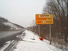 In the early 1950s, construction began on a western bypass of Springville that connected US 219 just north of the village to East Otto Road 6 miles (10 km) south of Springville. The portion of the highway north of Waverly Street was completed by 1954.[24][25] The remainder of the bypass was finished by 1956, at which time US 219 was realigned to follow the bypass around the village. At the south end of the bypass, US 219 continued south to Ellicottville by way of pre-existing, previously unnumbered highways.[26] However, the segment of modern NY 240 vacated by US 219 did not become part of an extended NY 240 until the mid-1960s.[27][28] In the 1990s, US 219 was rerouted to follow the Southern Tier Expressway between exit 21 in Salamanca and exit 23 just south of Bradford Junction. The old alignment of US 219 through Carrollton and Salamanca became US 219 Business.[29][30]