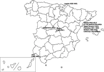 The first race generally considered to be a Spanish Grand Prix was held in 1913. Though not run to the Grand Prix formula of the day, instead it was a race for touring cars, taking place on a 300-kilometre road circuit at Guadarrama, near Madrid, on the road to Valladolid.[2][3] It was officially named the RACE Grand Prix[4][5] (after the Royal Automobile Club of Spain) and was won by Carlos de Salamanca with Rolls-Royce.