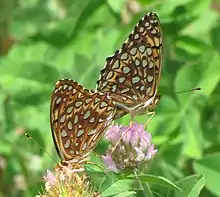 Speyeria atlantis, the Atlantis fritillary, is a butterfly of the family Nymphalidae of North America. It is from the Avalon Peninsula of Newfoundland and Labrador to northern British Columbia, across the northern United States south as far as Colorado and West Virginia.[1][2] It resides as far north as James Bay. The species is listed as endangered in Connecticut.[3]