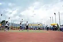 Sports in Cameroon is practiced widely by the population and advocated by the national government. Cameroonians take pride in victories at international competitions, making sport an important source of national unity.[1] Traditional sports in Cameroon include canoe racing, swimming, tug of war, and wrestling. Wrestling has featured in the initiation rites and other ceremonies of ethnic groups such as the Bakweri and the Duala.[2] However, in modern times, sports such as basketball, boxing, cycling, handball, netball, caber toss, and table tennis have become popular.[3] The 40 km (24.8 mi) Mount Cameroon Race of Hope draws several hundred runners each year.[4] Tourists hike, rock climb, and mountaineer, especially up Mount Cameroon.[5] Yaoundé, Tiko and Kribi have golf courses.[6] Rugby union is also played, with about 15 clubs and 3,000 players nationally.[7]