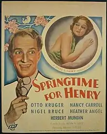 Springtime for Henry is a 1934 American comedy film directed by Frank Tuttle and starring Otto Kruger, Nancy Carroll and Nigel Bruce.[1] It was based on a play of the same name by the British writer Benn W. Levy which enjoyed an eight-month run on Broadway. The film was made on a budget of $250,000 and suffered a considerable loss, taking only $126,000 at the box office.[2]
