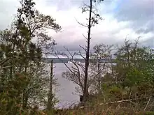 Given the sparsity of any documentation for fifth-century Ireland, it is not surprising that there is no proof that St. Patrick ever visited Lough Derg. And while this is the legend, it is a rather late legend dating probably from the twelfth century.[7] There is however a much more firmly established tradition regarding St. Dabheog or Dabheoc, a local abbot who presided over, and possibly established, the monastery on the site during the lifetime of Patrick.[8] His name has been associated from these early centuries with several places in the area, for instance: St. Dabheoc's Chair on the south bank of Lough Derg, the townland of Seedavoc (St. Dabheoc's Seat), and a mountain in that townland, Seadavog Mountain. One of the islands in Lough Derg was also named after him: St. Dabheoc's Island, which may have been Saints Island or another island entirely.[9]
