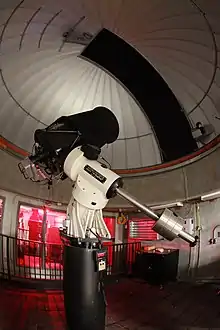 The St. Thomas Observatory is an astronomical observatory operated by the Department of Physics on the main campus of the University of St. Thomas in Minnesota. The observatory[2][3] consists of an automated dome and a fully robotic 17-inch (0.43 m) corrected Dall-Kirkham reflecting telescope coupled with a 10.7-megapixel CCD camera. The observatory is used for public observing events and facilitates student research projects.