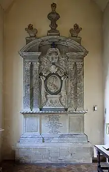 Over the chancel arch are the royal arms of Charles II, dated 1660.[4] On the south side of the chancel is the tomb of Edmund Clerke who was clerk to His Majesty's Privy Seal and died in 1632, and his wife Anne:[13] their figures are kneeling under a canopy, with those of four sons and eight daughters on the base of the monument.[4] Opposite this is a tomb dated from about 1540.[3]