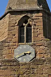 Simmons of Warwick made the present turret clock in the west tower in 1865. It is built to have three dials but only one, on the south side of the tower, was installed. However, in 1876 a dial was added on the ceiling of the ringing room. It has no hour hand, only a minute hand, and is for bell-ringers to time their ringing.[17]