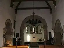 In 1986 workmen were treating roof timbers of the church for protection against vermin when a fire broke out. The fire brigade quickly put out the blaze, saving the main building, but the roof timbers were severely damaged. This rendered the building unstable, however, which resulted in much scaffolding being put up, which in turn required pews and flooring to be removed. The roof was redesigned and the walls were strengthened. New floors and pews were fitted. The new pews, unlike the pre-restoration ones, are easier to move, giving the church more flexibility. The old pews were considered impossible to re-install in the church. The restoration cost about £510,000 and was complete by 1988. It was during the extensive renovation work that archaeologists were able to confirm the dating of the church's original construction.