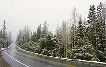 SR 88 is one of the few trans-Sierra state routes that Caltrans attempts to keep open year-round. Caltrans has winter closures in effect for all Sierra Nevada highway passes between Carson Pass and Walker Pass (SR 178),[4] a span of over 200 miles (320 km). SR 88 follows a ridge to ascend most of the western slope of the Sierra Nevada.[5] The highway is occasionally used as a detour when U.S. Route 50, which follows the South Fork American River to ascend the Sierra Nevada, is flooded or otherwise closed.[6][7]
