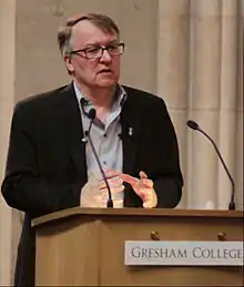 ![]() Stephen Hodder delivering the 2014 Gresham Special Lecture | |