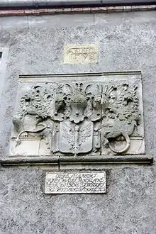 After the Reformation, Countess Anna built an outer wall in 1558 using stones from the abandoned Barthe Abbey and from Uplengen Castle, which had been razed in 1535 at the behest of Count Enno II.[3] The castle was further extended by Count Johan II, who died at the castle in 1591.