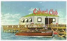 The first social club built at Stiltsville was constructed during the late 1930s and named the Calvert Club. The Miami Beach Rod & Reel Club was organized in 1929 and held its first official outing at the Stiltsville Calvert Club in August 1938.[3] A club picture was taken in front of the club, which was popular enough to have picture postcards printed with its image.